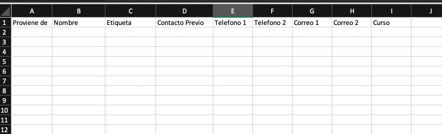 Selecciona un archivo xlsx con el siguiente formato